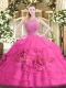 Dramatic Floor Length Ball Gowns Sleeveless Hot Pink Quinceanera Dress Zipper