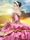 Edgy Pick Ups Floor Length Rose Pink Vestidos de Quinceanera Off The Shoulder Sleeveless Lace Up