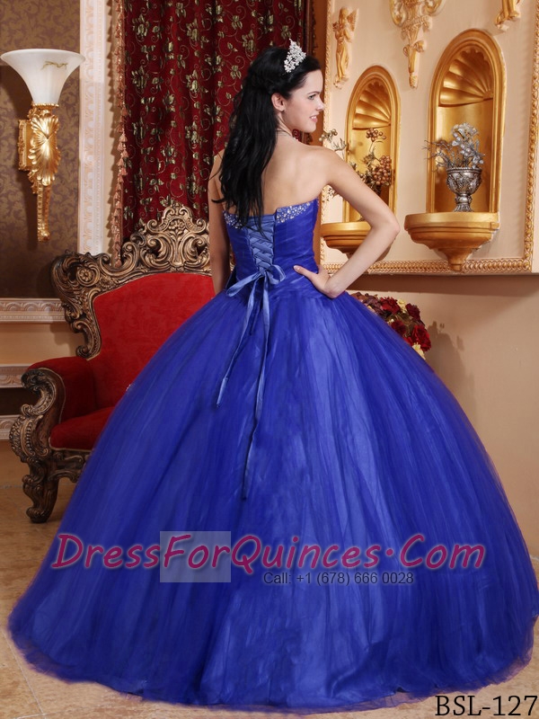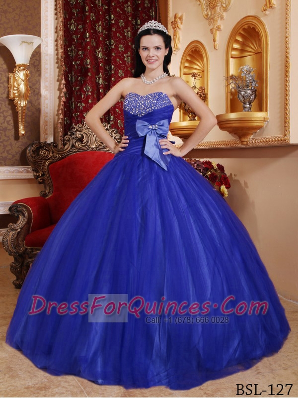 Elegant Floor-length Sweetheart Blue Ball Gown Tulle and Tafftea Beading Beautiful Quinceanera Dress 2014