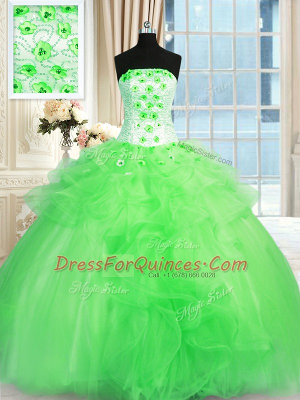Elegant Pick Ups and Hand Made Flower Quince Ball Gowns Lace Up Sleeveless Floor Length