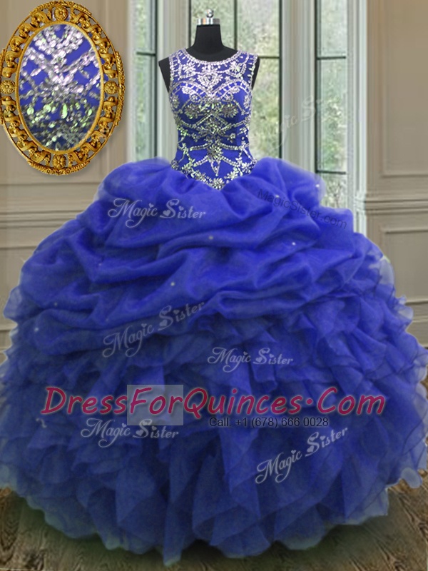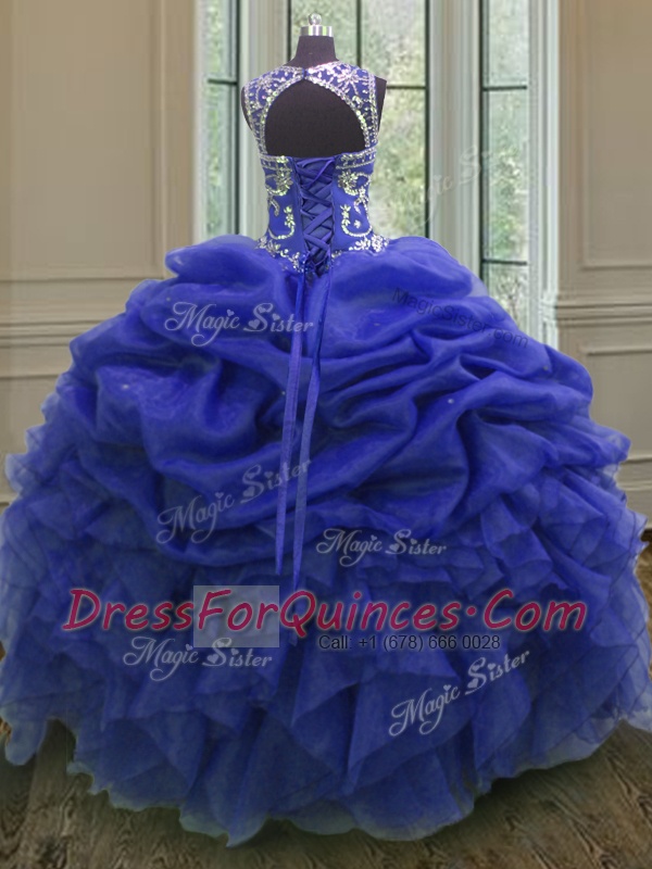 Exceptional Scoop Sleeveless Lace Up Floor Length Beading and Ruffles and Pick Ups 15th Birthday Dress