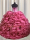 Exquisite Visible Boning Bling-bling With Train Ball Gowns Sleeveless Rose Pink 15 Quinceanera Dress Brush Train Lace Up