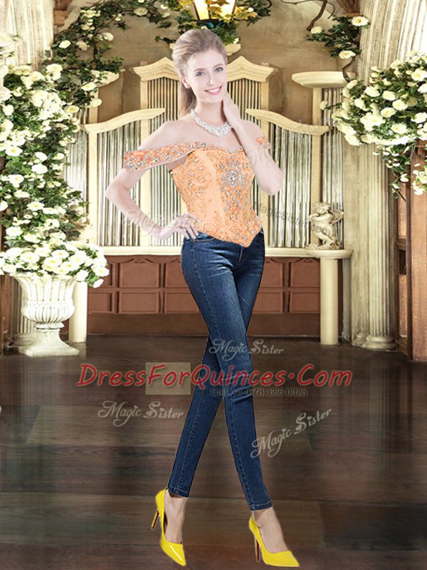 Fancy Floor Length Brown Quinceanera Gown Off The Shoulder Sleeveless Lace Up
