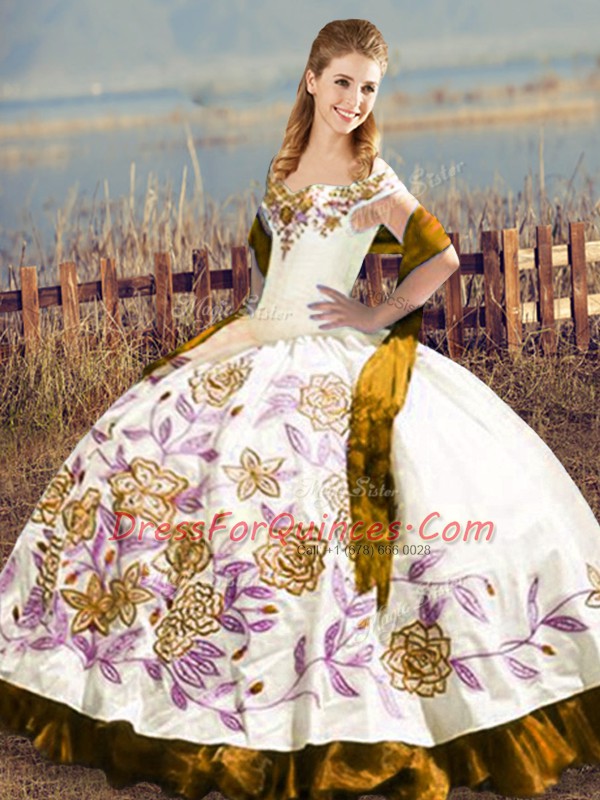 Fantastic Ball Gowns Sweet 16 Quinceanera Dress Brown Off The Shoulder Satin Sleeveless Floor Length Lace Up
