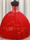 Fantastic Ball Gowns Sweet 16 Quinceanera Dress Red Sweetheart Tulle Sleeveless Floor Length Lace Up