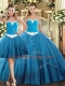 Fantastic Floor Length Teal 15 Quinceanera Dress Tulle Sleeveless Beading