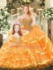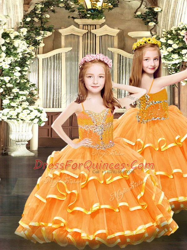 Fashionable Beading and Ruffled Layers Sweet 16 Quinceanera Dress Orange Red Lace Up Sleeveless Floor Length