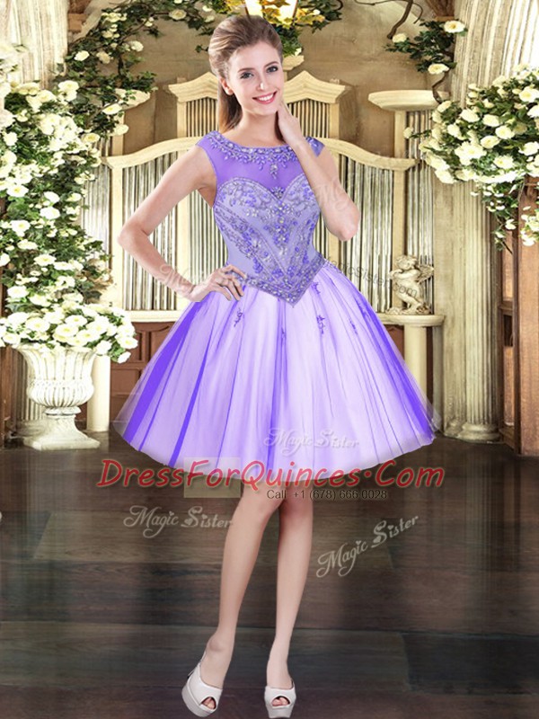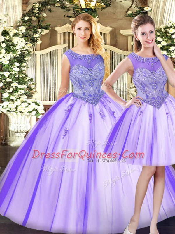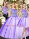 Fashionable Sleeveless Floor Length Beading Zipper Quince Ball Gowns with Lavender