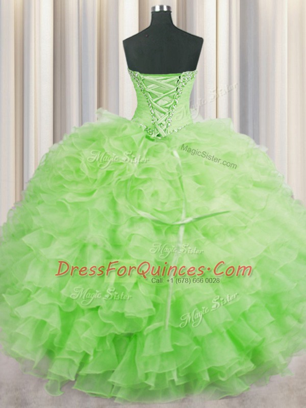 Fine Lace Up Quince Ball Gowns Beading and Ruffles Sleeveless Floor Length