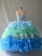 Flare Floor Length Multi-color Quinceanera Gown Organza Sleeveless Beading and Ruffles