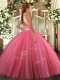 Floor Length Backless Quince Ball Gowns Rose Pink for Military Ball and Sweet 16 and Quinceanera with Beading