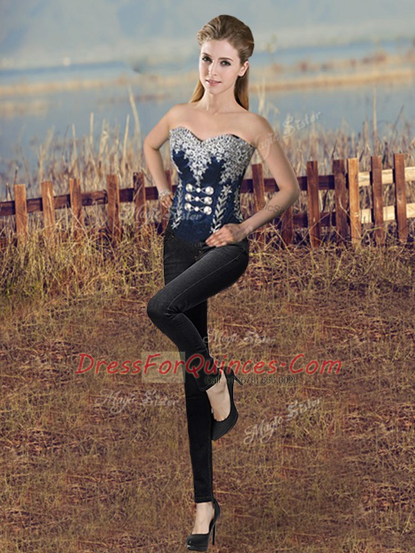 Floor Length Lace Up Quinceanera Dress Navy Blue for Sweet 16 and Quinceanera with Embroidery and Ruffles