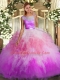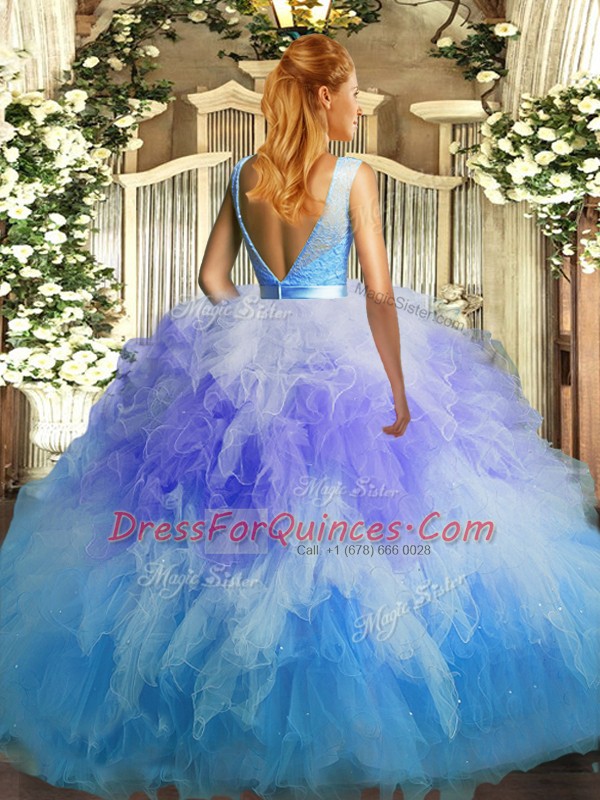 Floor Length Multi-color Vestidos de Quinceanera Organza Sleeveless Lace and Ruffles