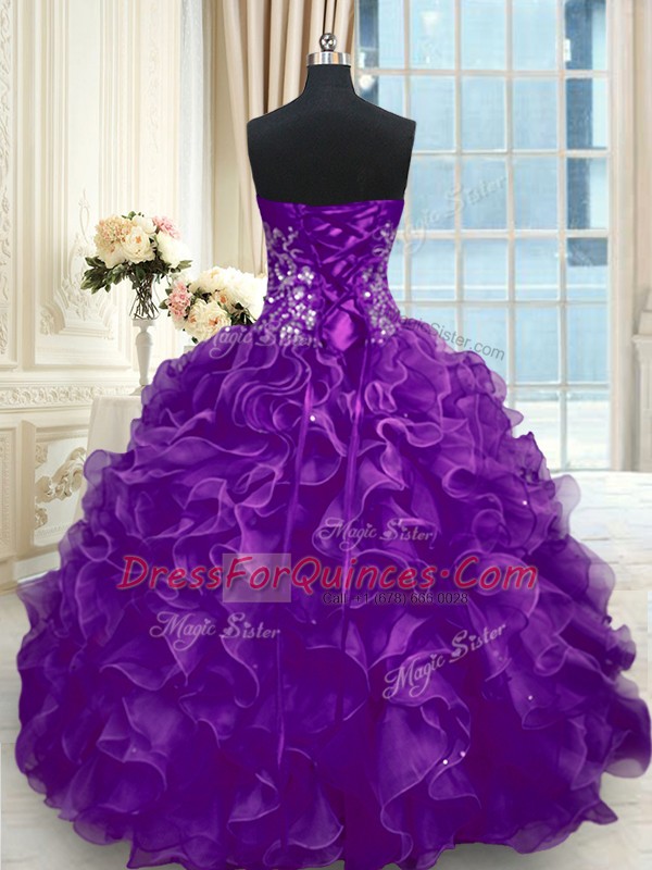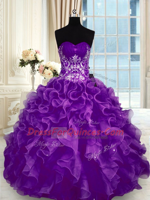 Floor Length Purple Quinceanera Dress Sweetheart Sleeveless Lace Up