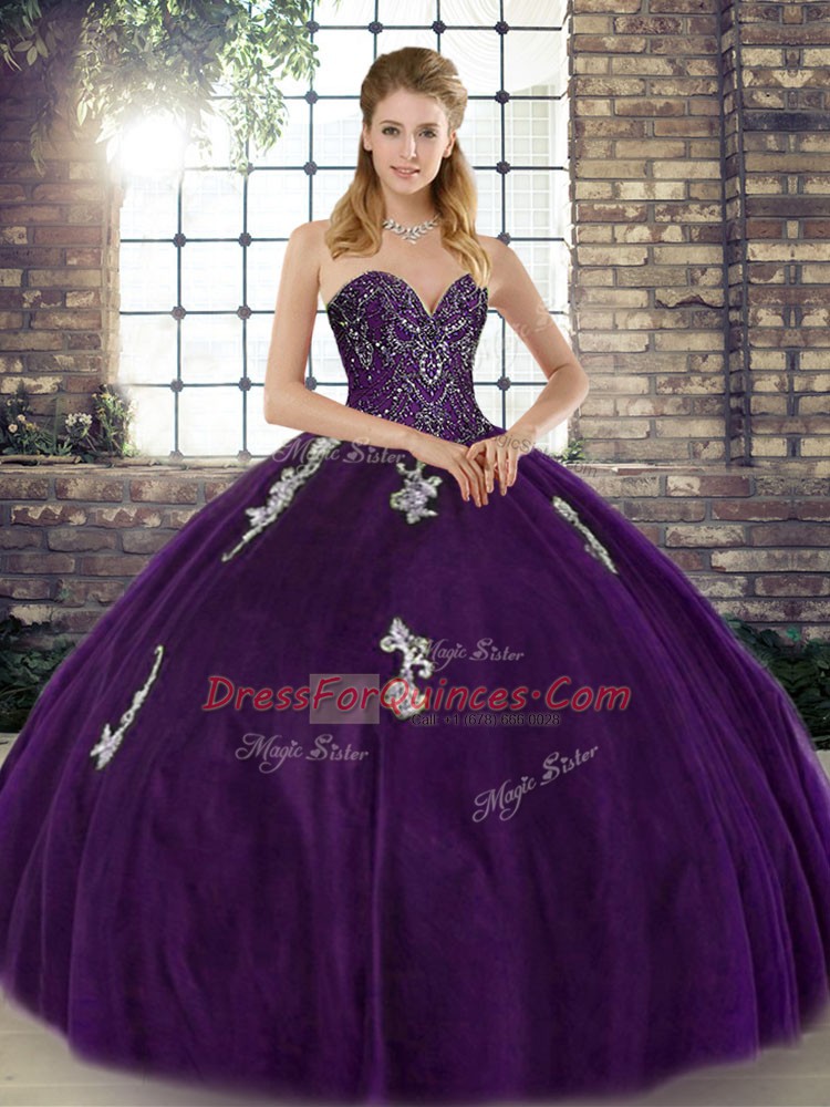 Floor Length Purple Sweet 16 Quinceanera Dress Sweetheart Sleeveless Lace Up