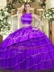 Floor Length Two Pieces Sleeveless Purple Sweet 16 Dress Criss Cross