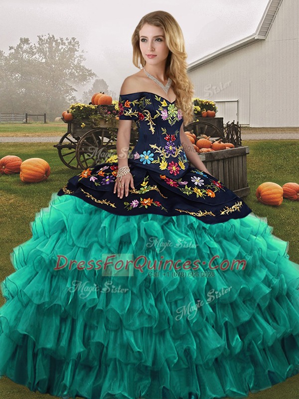 Glamorous Turquoise Sleeveless Embroidery and Ruffled Layers Floor Length Sweet 16 Dress