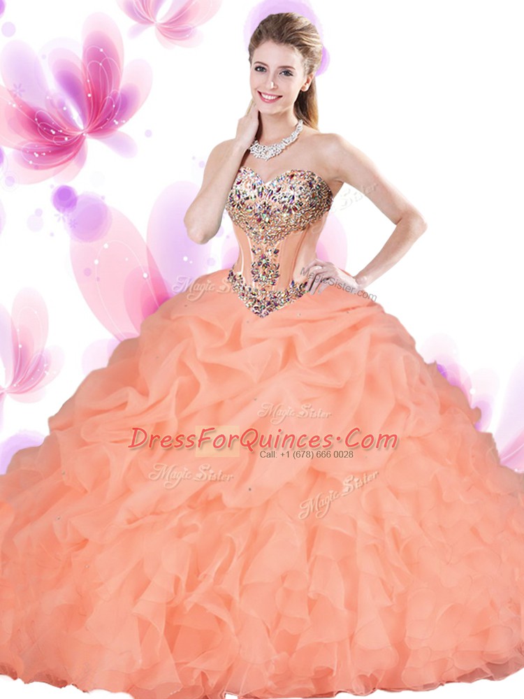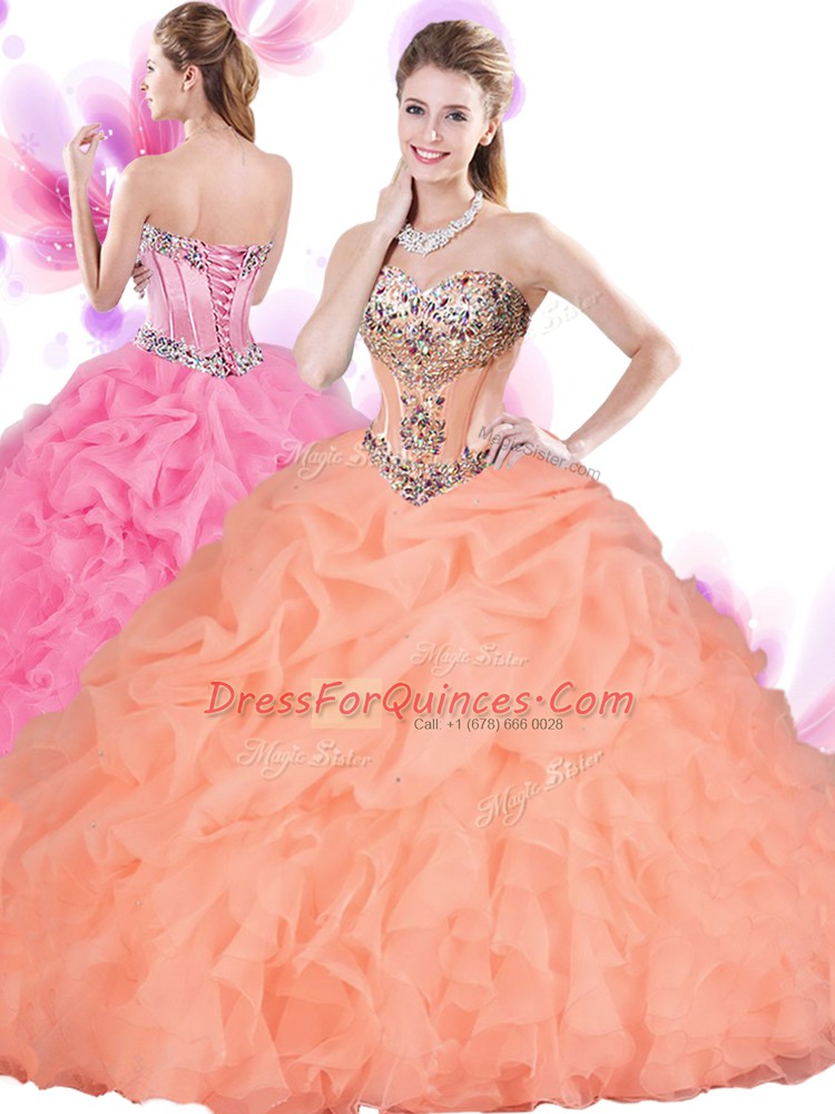 Glittering Orange Red Lace Up Sweetheart Beading and Ruffles 15 Quinceanera Dress Tulle Sleeveless