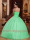 Gorgeous Beading Apple Green Ball Gown Strapless Floor-length Tulle Beautiful Quinceanera Dress