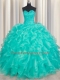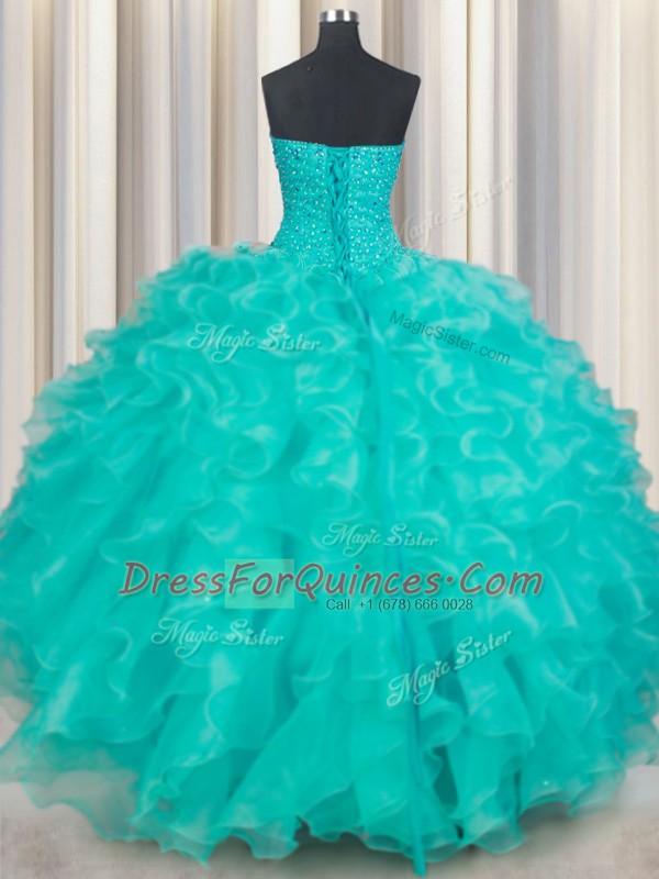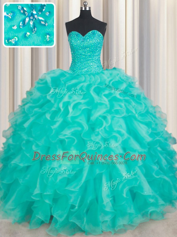 High Class Turquoise Lace Up Sweetheart Beading and Ruffles Quinceanera Dresses Organza Sleeveless