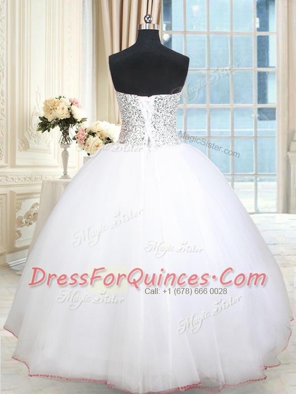 High End Sequins White Sleeveless Tulle Lace Up Sweet 16 Dress for Military Ball and Sweet 16 and Quinceanera