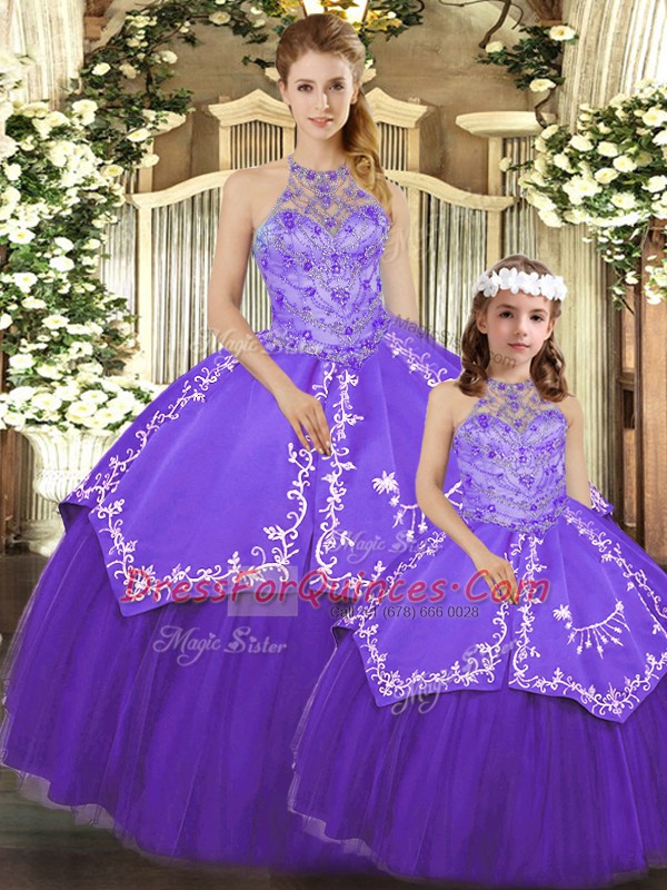 Hot Selling Sleeveless Lace Up Floor Length Beading and Embroidery Vestidos de Quinceanera