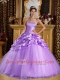 Luxurious Taffeta and Tulle Beading Lavender Ball Gown Floor-length Beautiful Quinceanera Dress For 2014
