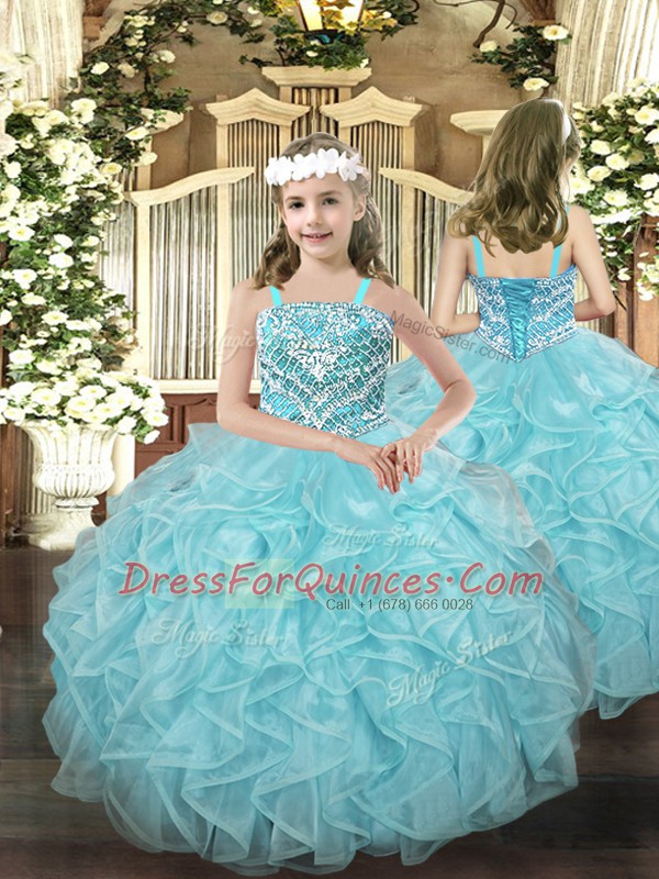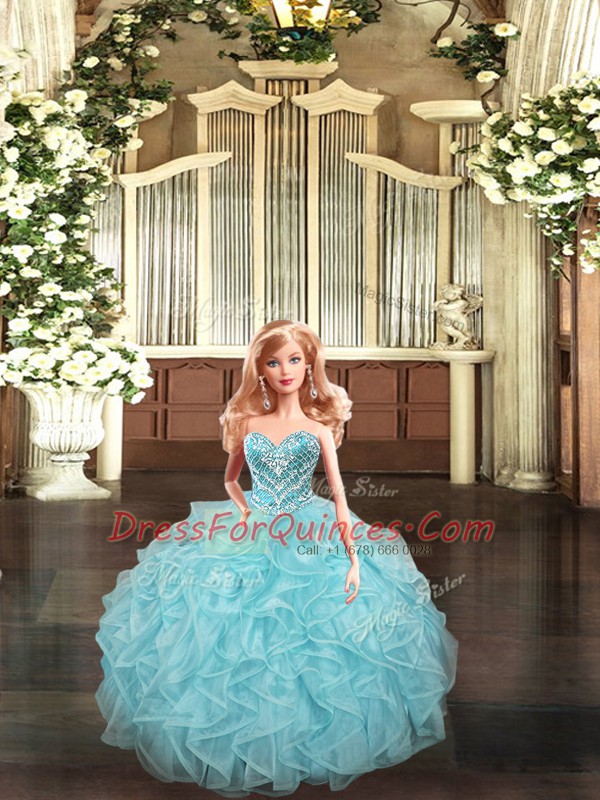 Modern Organza Sleeveless Floor Length Quince Ball Gowns and Beading and Ruffles