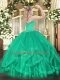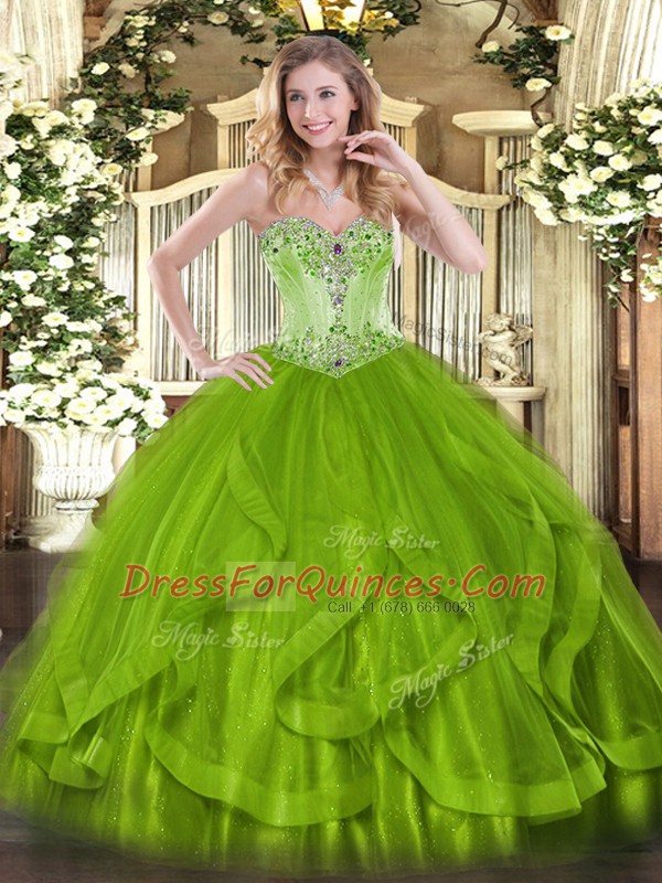 Olive Green Ball Gowns Organza Sweetheart Sleeveless Beading and Ruffles Lace Up Sweet 16 Quinceanera Dress