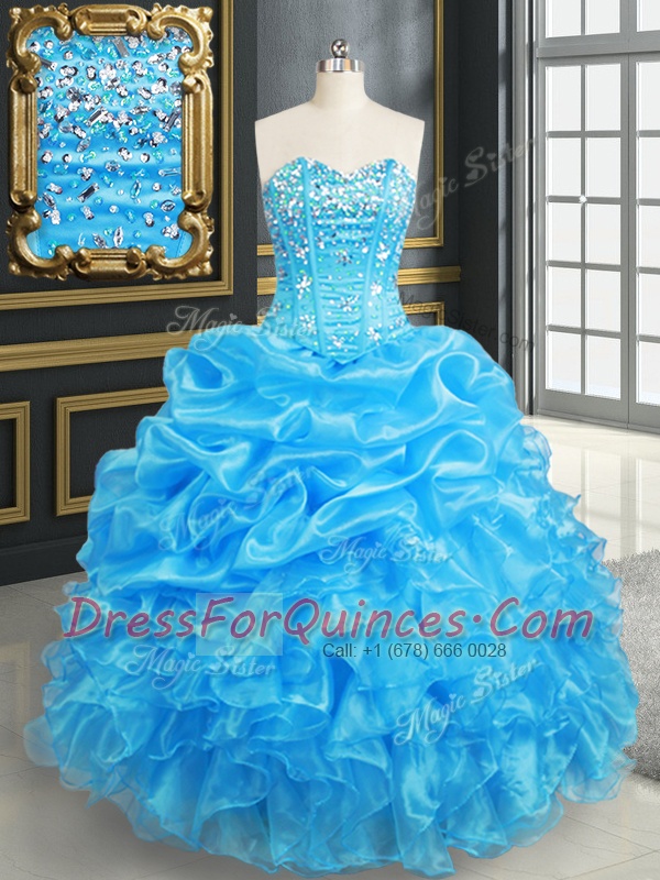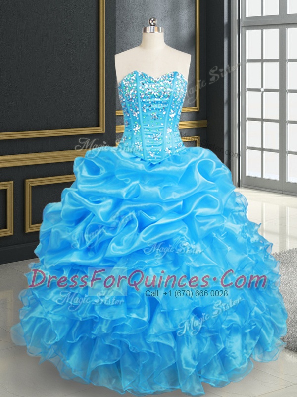 Pick Ups Baby Blue Sleeveless Organza Lace Up Quinceanera Dresses for Military Ball and Sweet 16 and Quinceanera