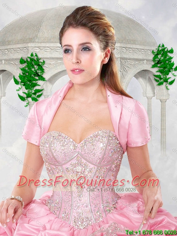 Pretty Ball Gown Sweetheart Beading Rose PinkQuinceanera Dresses for 2016 Spring
