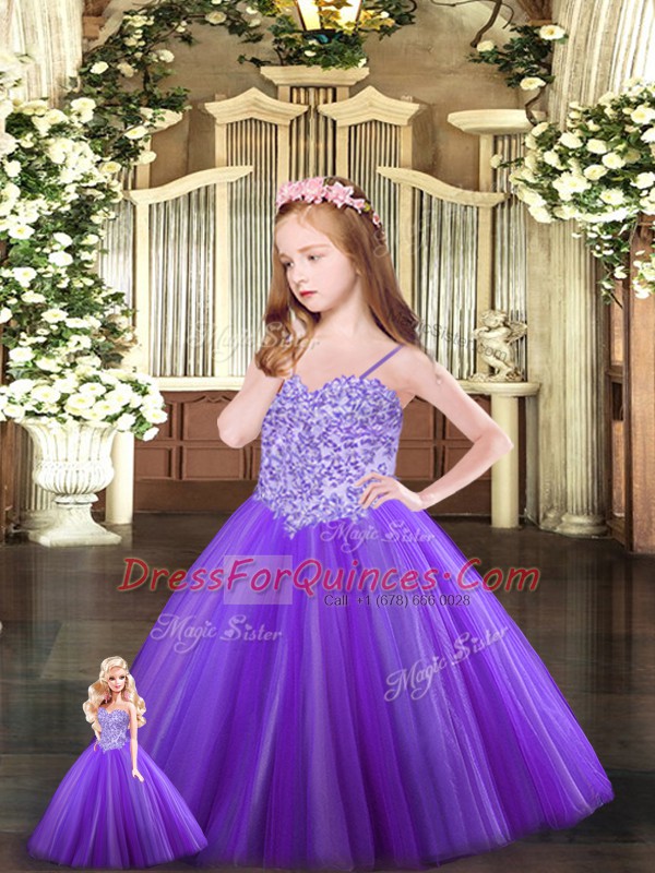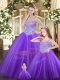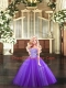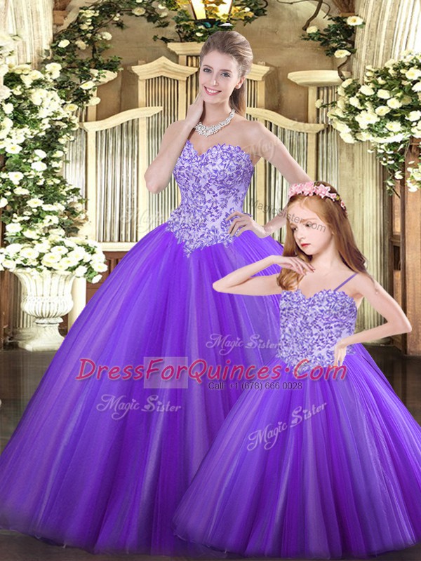 Purple Ball Gowns Tulle Sweetheart Sleeveless Beading Floor Length Lace Up 15th Birthday Dress