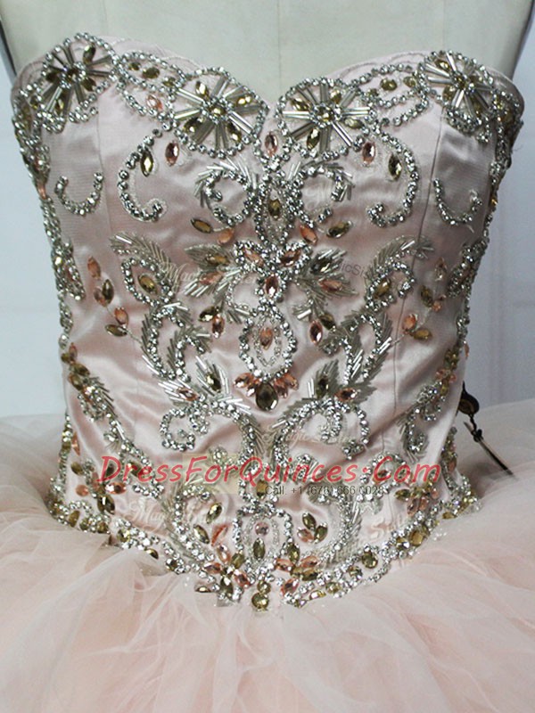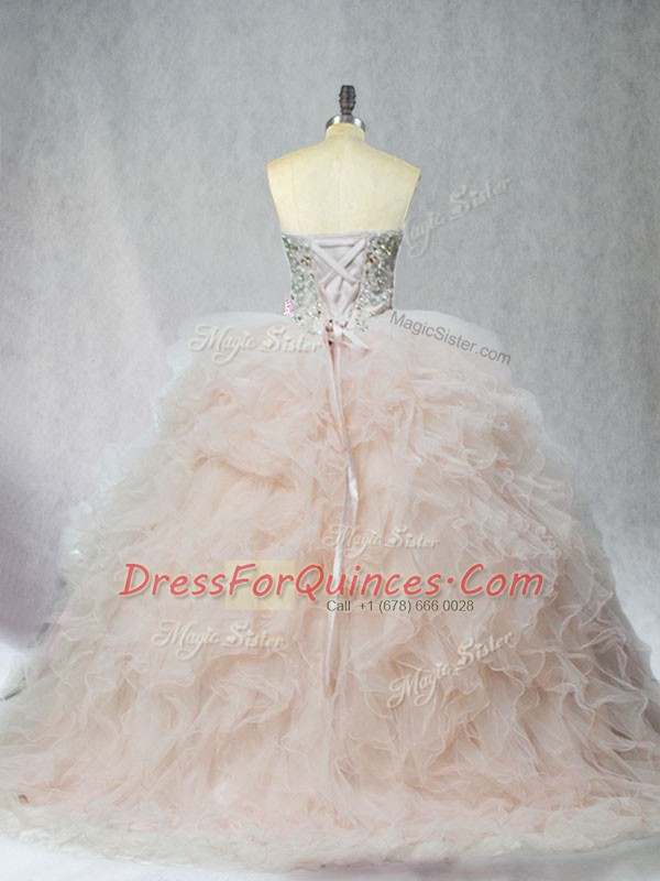 Romantic Champagne Lace Up Quince Ball Gowns Beading and Ruffles Sleeveless