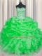 Romantic Organza Sweetheart Sleeveless Lace Up Beading and Ruffles Sweet 16 Quinceanera Dress in Green