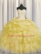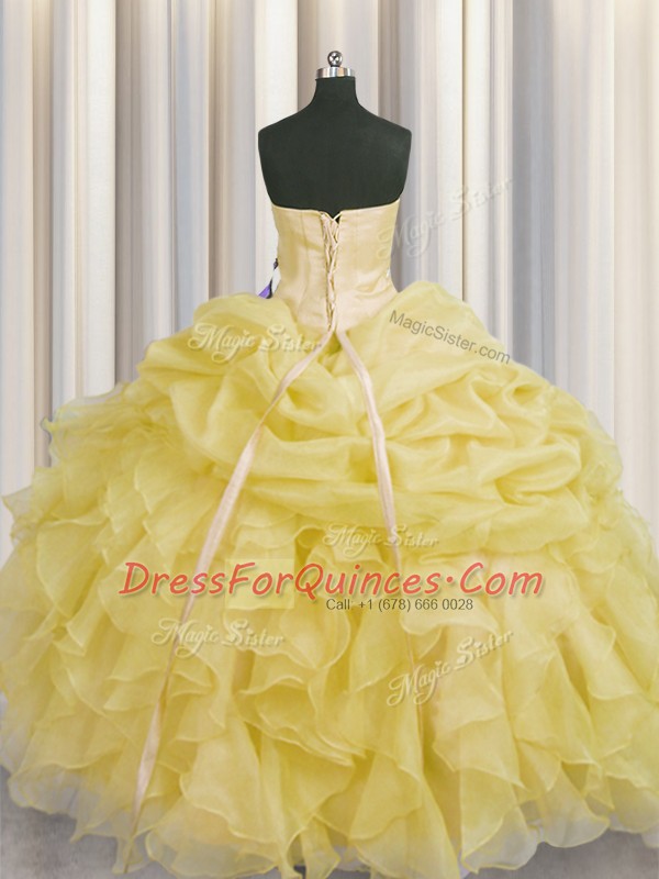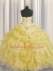 Sleeveless Floor Length Beading and Ruffles Lace Up Sweet 16 Dresses with Light Yellow