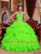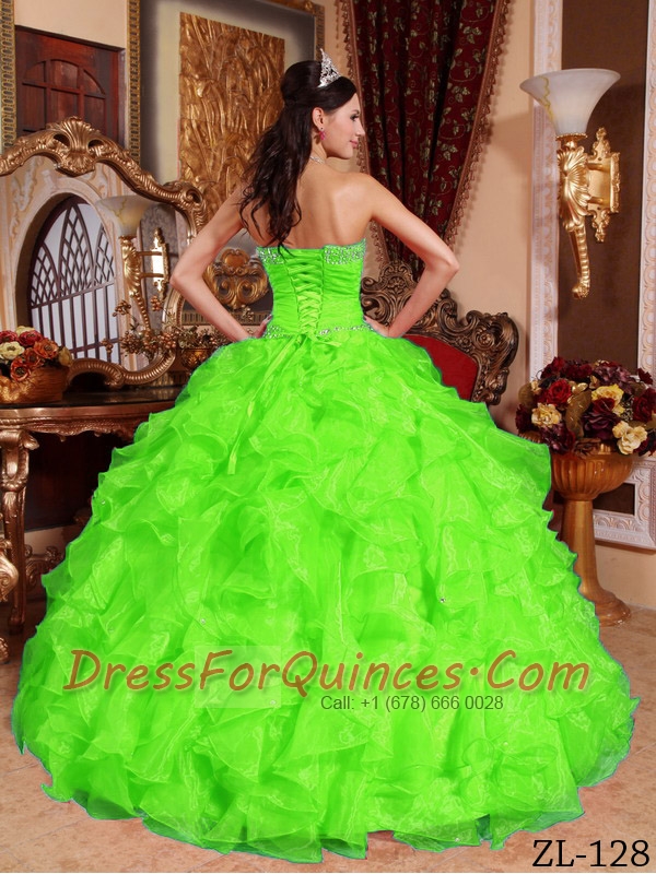 Spring Green Ball Gown Sweetheart Floor-length Organza Beading Beautiful Quinceanera Dress