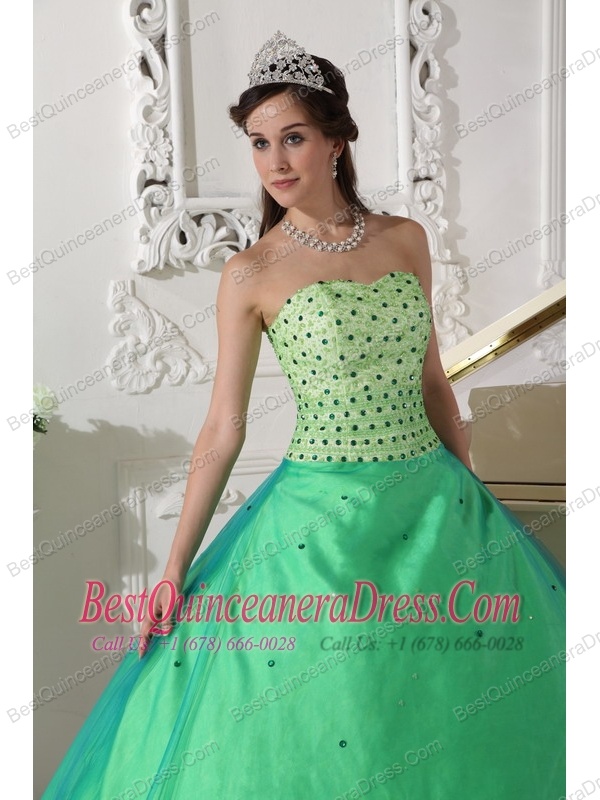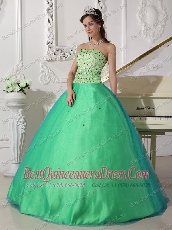 Spring Green Ball Gown Sweetheart Floor-length Tulle Beading Quinceanera Dress