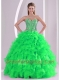 Strapless Green Organza Lace-up Sweetheart Beautiful Quinceanera Dress