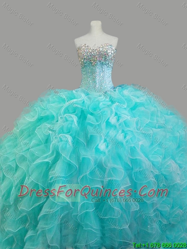 Summer Beautiful Beaded Sweetheart Quinceanera Dresses in Aqua Blue