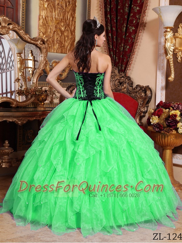 Sweetheart Embroidery with Beading Beautiful Quinceanera Dressin Spring Green and Black