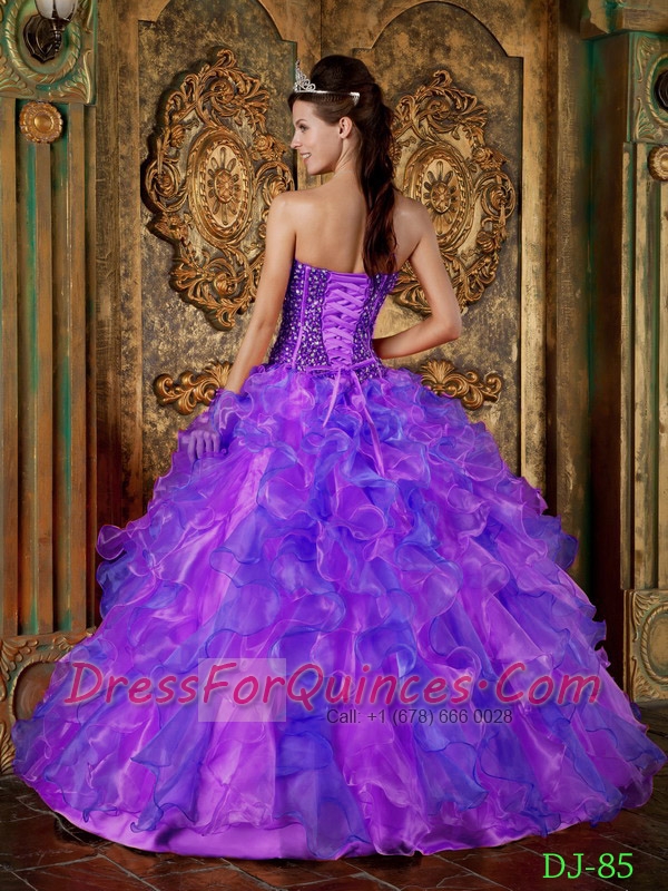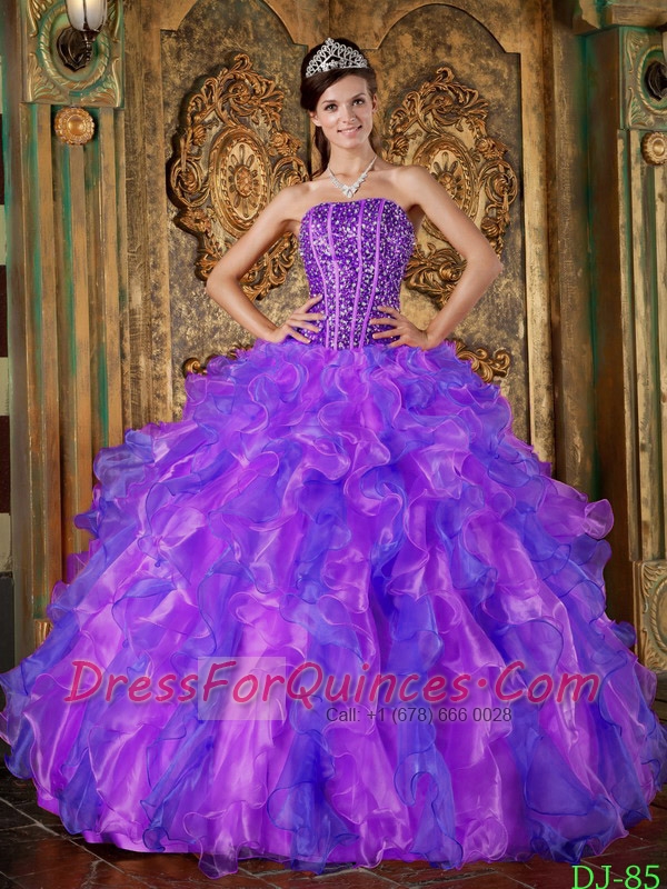 The Super Hot 2014 Beading Ball Gown Strapless Floor-length Organza Beautiful Quinceanera Dress In Multi-Color