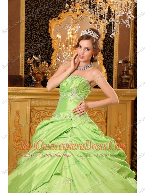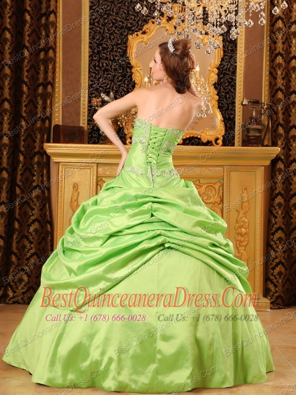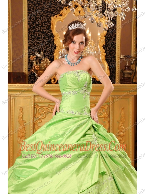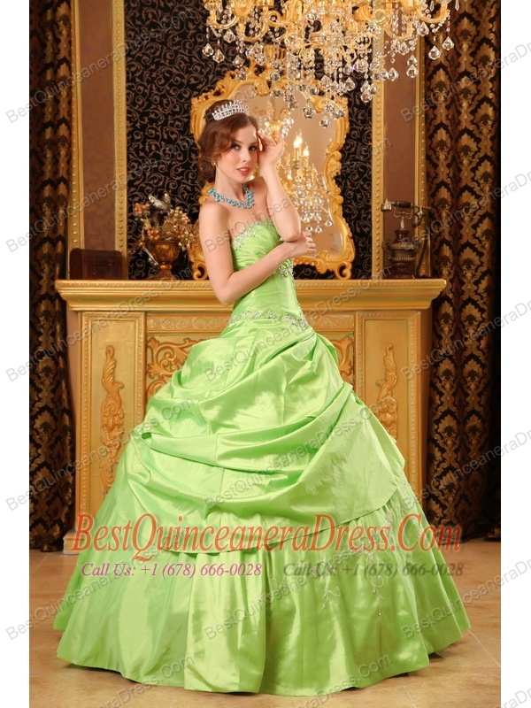 Yellow Green Ball Gown Strapless Floor-length Taffeta Beading Quinceanera Dress