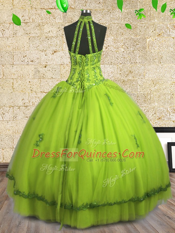 Yellow Green Halter Top Lace Up Beading Quinceanera Dresses Sleeveless
