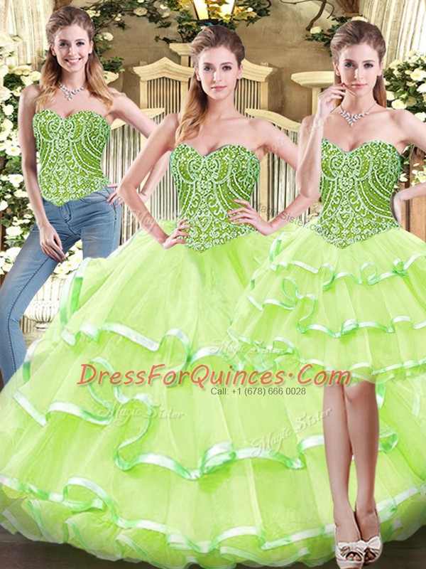 Yellow Green Sweet 16 Quinceanera Dress Military Ball and Sweet 16 and Quinceanera with Ruffled Layers Sweetheart Sleeveless Lace Up
