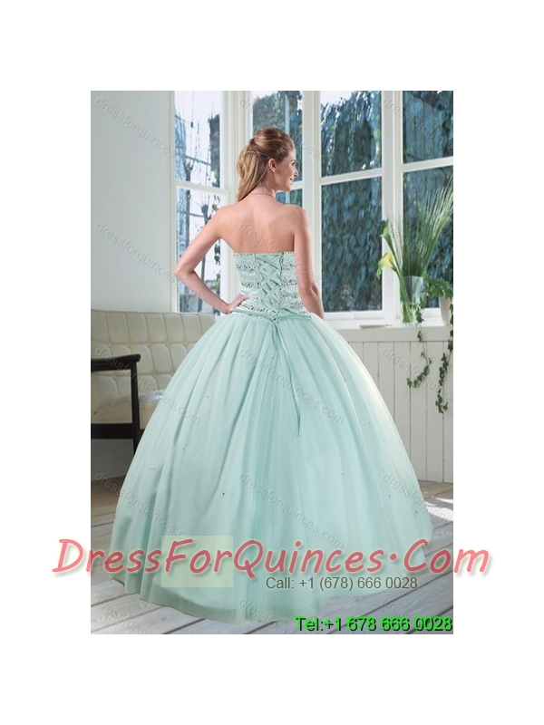 2015 Best Apple Green Strapless Sweet 15 Dresses with Beading