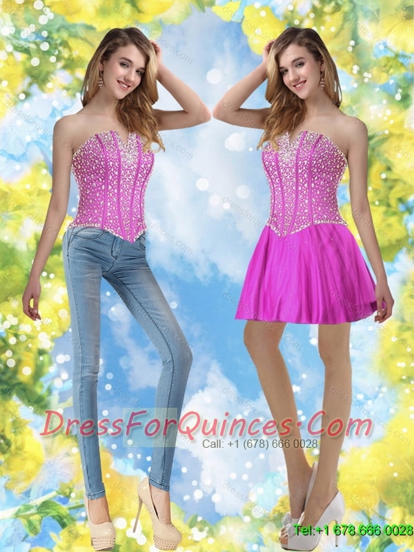 2015 Best Beading Quinceanera Dresses in Fuchsia