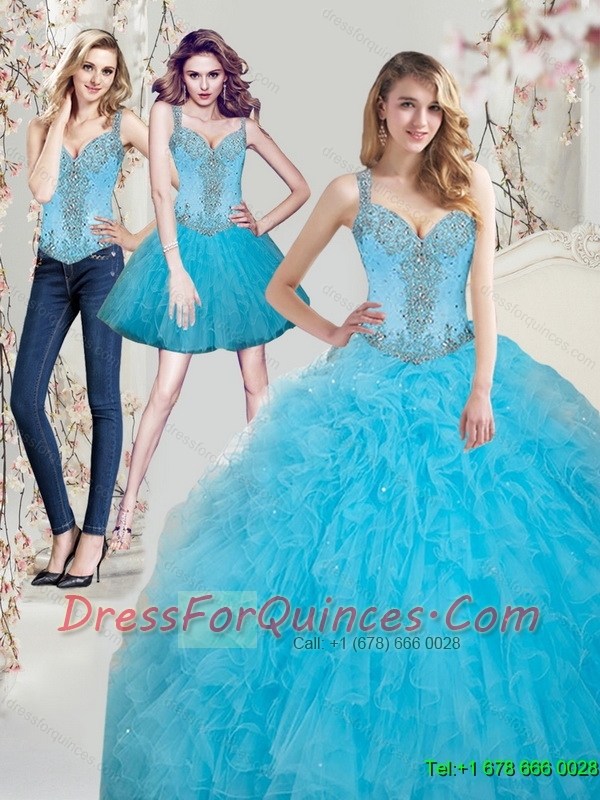 2015 Best New Beading Aqua Blue Dress for Quinceanera