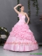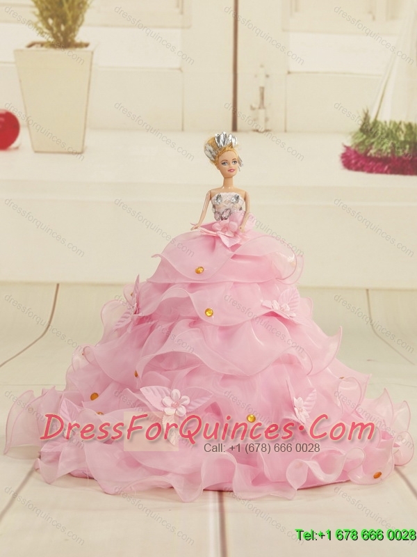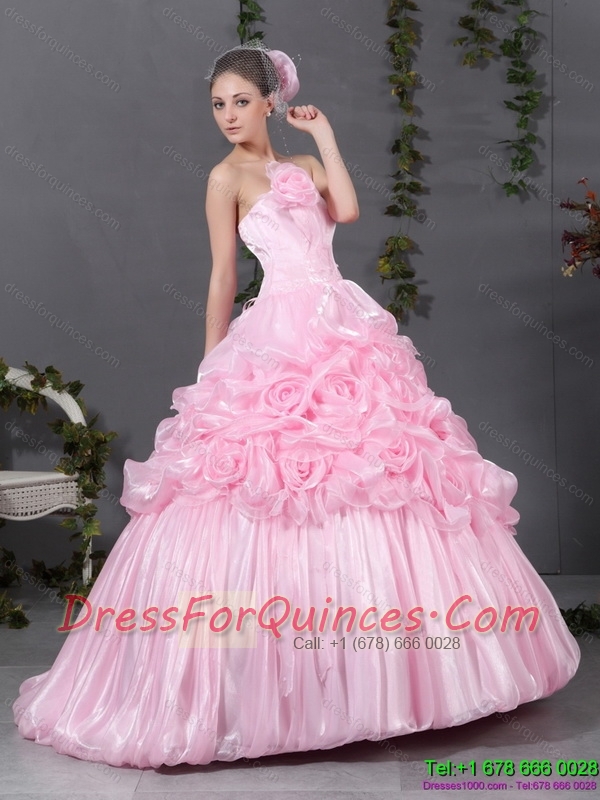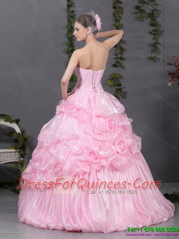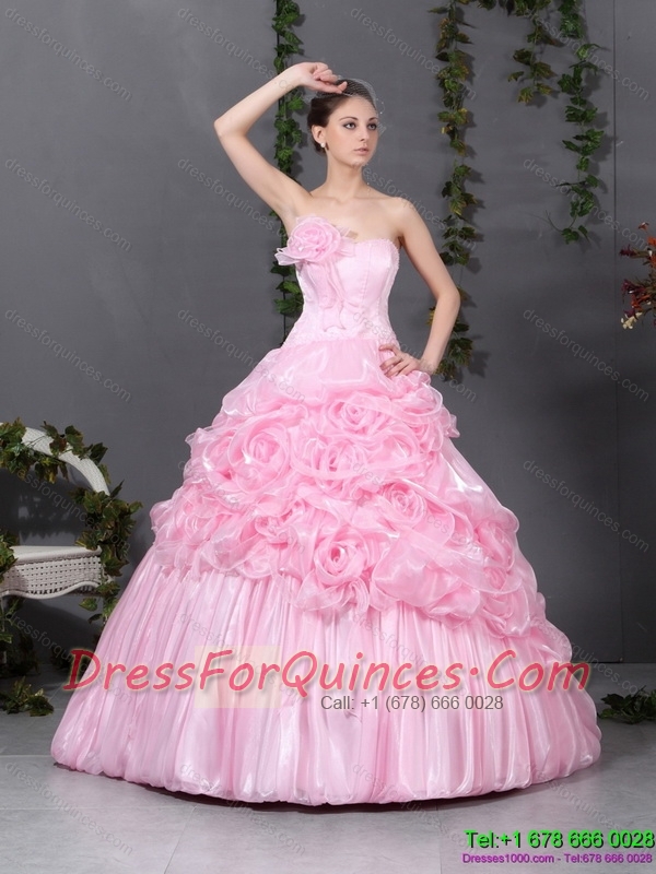 2015 Best Pink Quinceanera Gowns with Hand Made Flowers and Ruffles