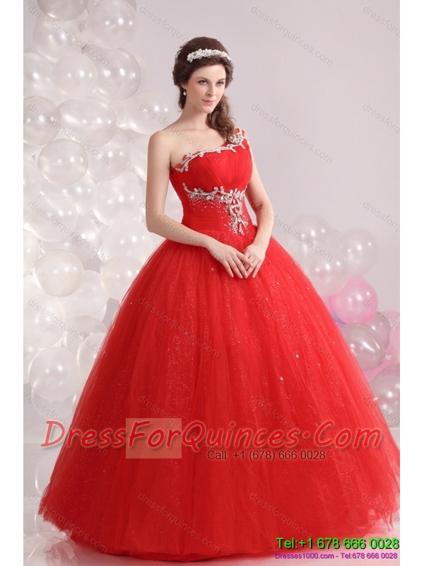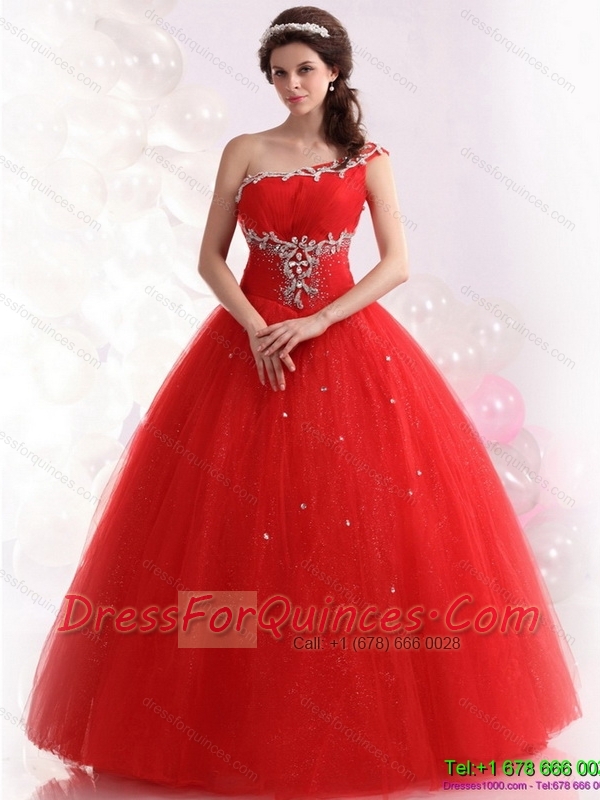 2015 Best Red One Shoulder Sweet 15 Dresses with Rhinestones