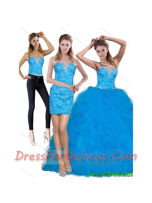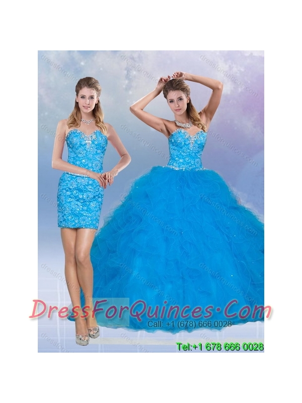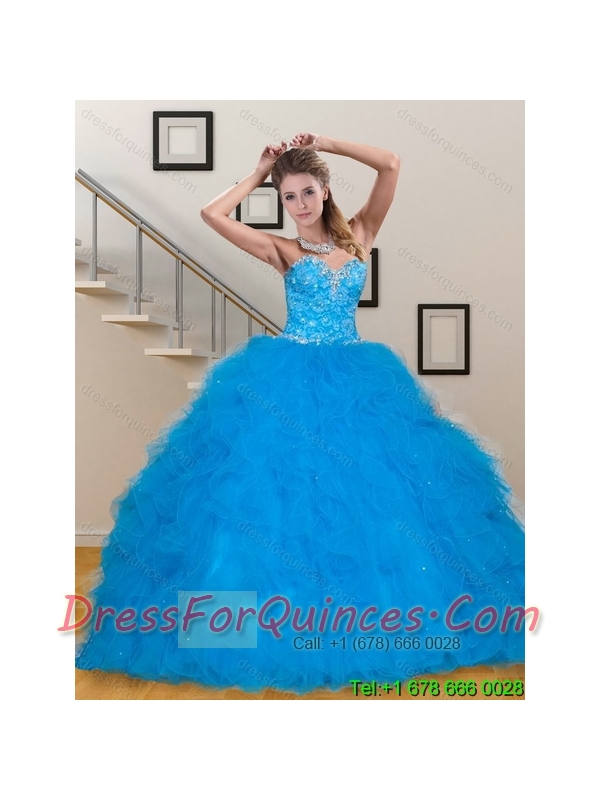 2015 Best Teal Sweetheart Quince Dresses with Sequins and Ruffles